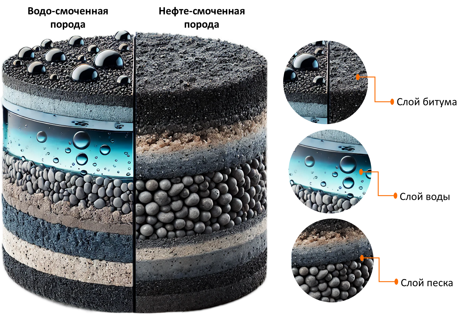 Описание водо-смоченных и нефте-смоченных кировых пород